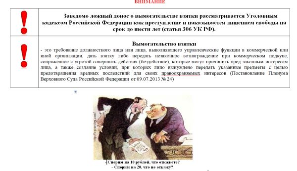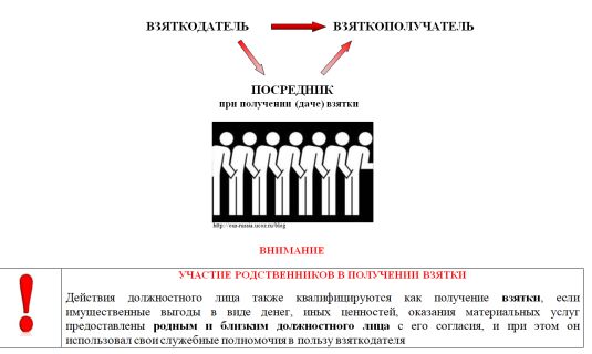 Взятка — принимаемые должностным лицом материальные ценности (предметы или деньги) или какая-либо имущественная выгода или услуги за действие (или наоборот бездействие), в интересах взяткодателя, которое это лицо могло или должно было совершить в силу своего служебного положения.