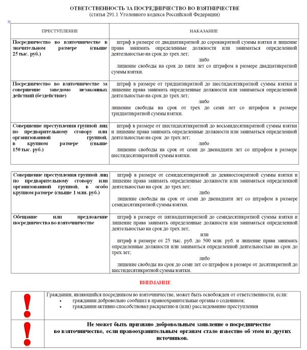 Посредничество во взяточничестве - непосредственная передача взятки по поручению взяткодателя или взяткополучателя или иное способствование взяткодателю и (или) взяткополучателю в достижении либо реализации соглашения между ними о получении и даче взятки (статья 291.1 УК РФ).