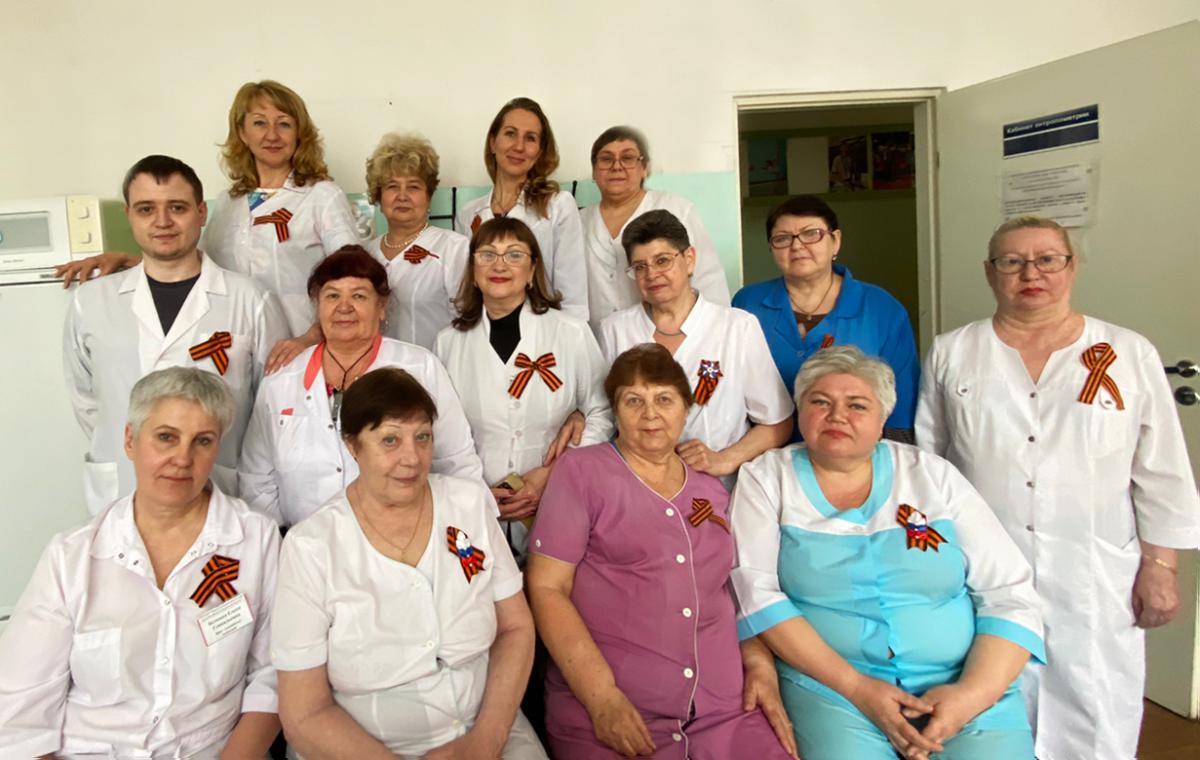 Сотрудники Новокузнецкого обособленного структурного подразделения Кузбасского клинического центра лечебной физкультуры и спортивной медицины активно поддерживают общественную акцию "Георгиевская ленточка". Их белые халаты в области сердца украшает черно-оранжевая тесьма.