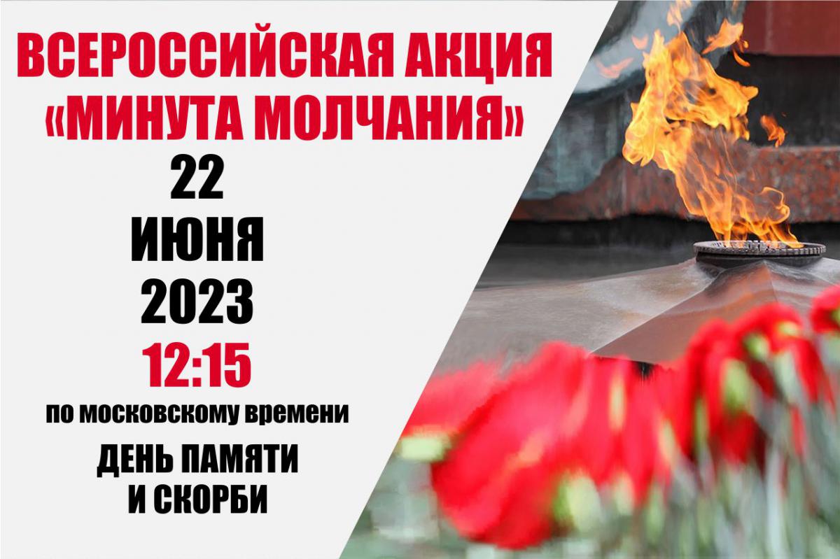 22 июня по всей стране пройдет Всероссийская акция «Минута молчания». Акция проводится в целях сохранения исторической памяти о Великой Отечественной войне, унесшей жизни 27 миллионов граждан.