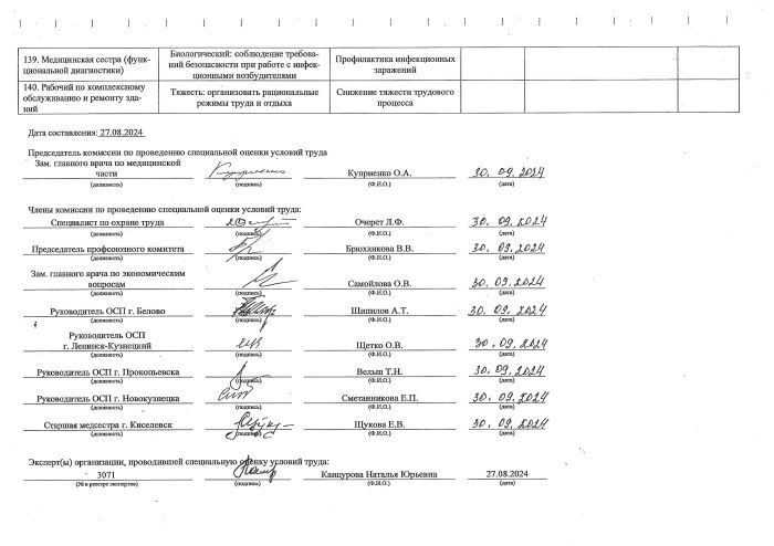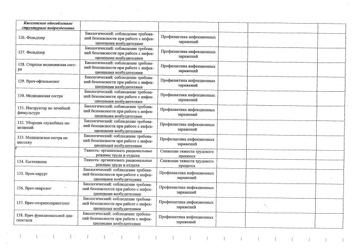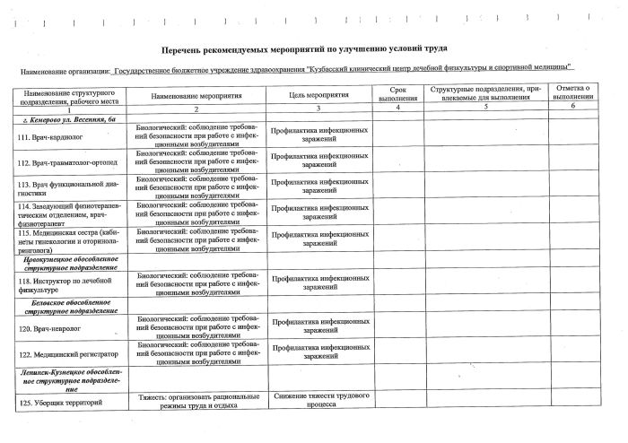 Перечень рекомендуемых мероприятий по улучшению условий труда