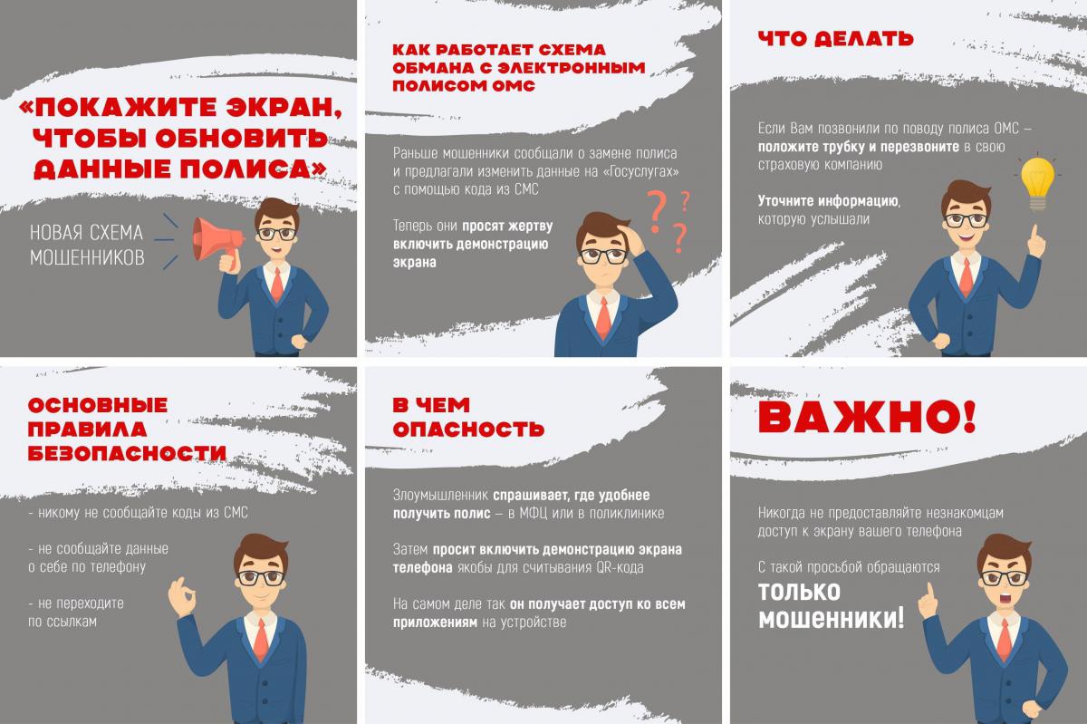 «Ваш полис ОМС обновился! Нужно изменить данные на "Госуслугах", включите демонстрацию экрана!», — так мошенники могут попытаться получить доступ к вашим личным данным.